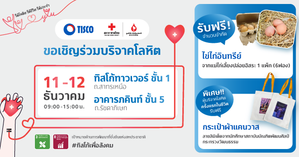 กลุ่มทิสโก้ ร่วมกับ สภากาชาดไทย ขอเชิญชวนทุกท่านบริจาคโลหิต ครั้งที่ 4/68