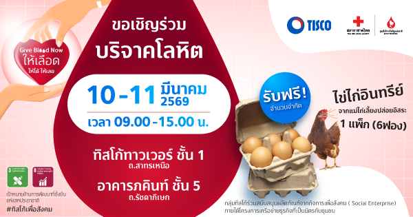 กลุ่มทิสโก้ ร่วมกับ สภากาชาดไทย ขอเชิญชวนทุกท่านบริจาคโลหิต ครั้งที่ 1/69